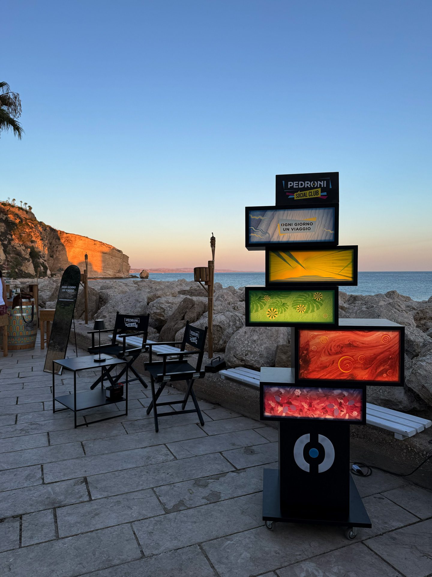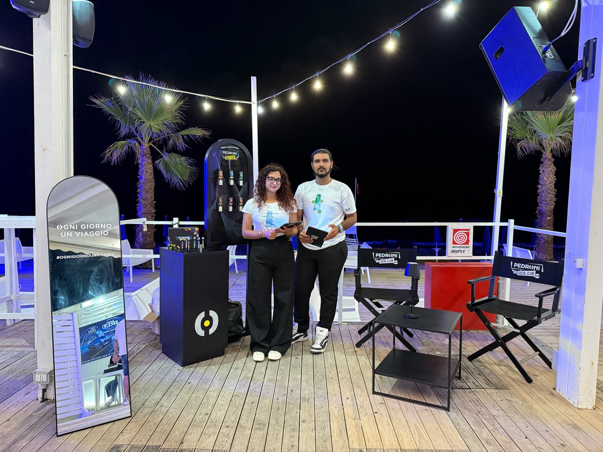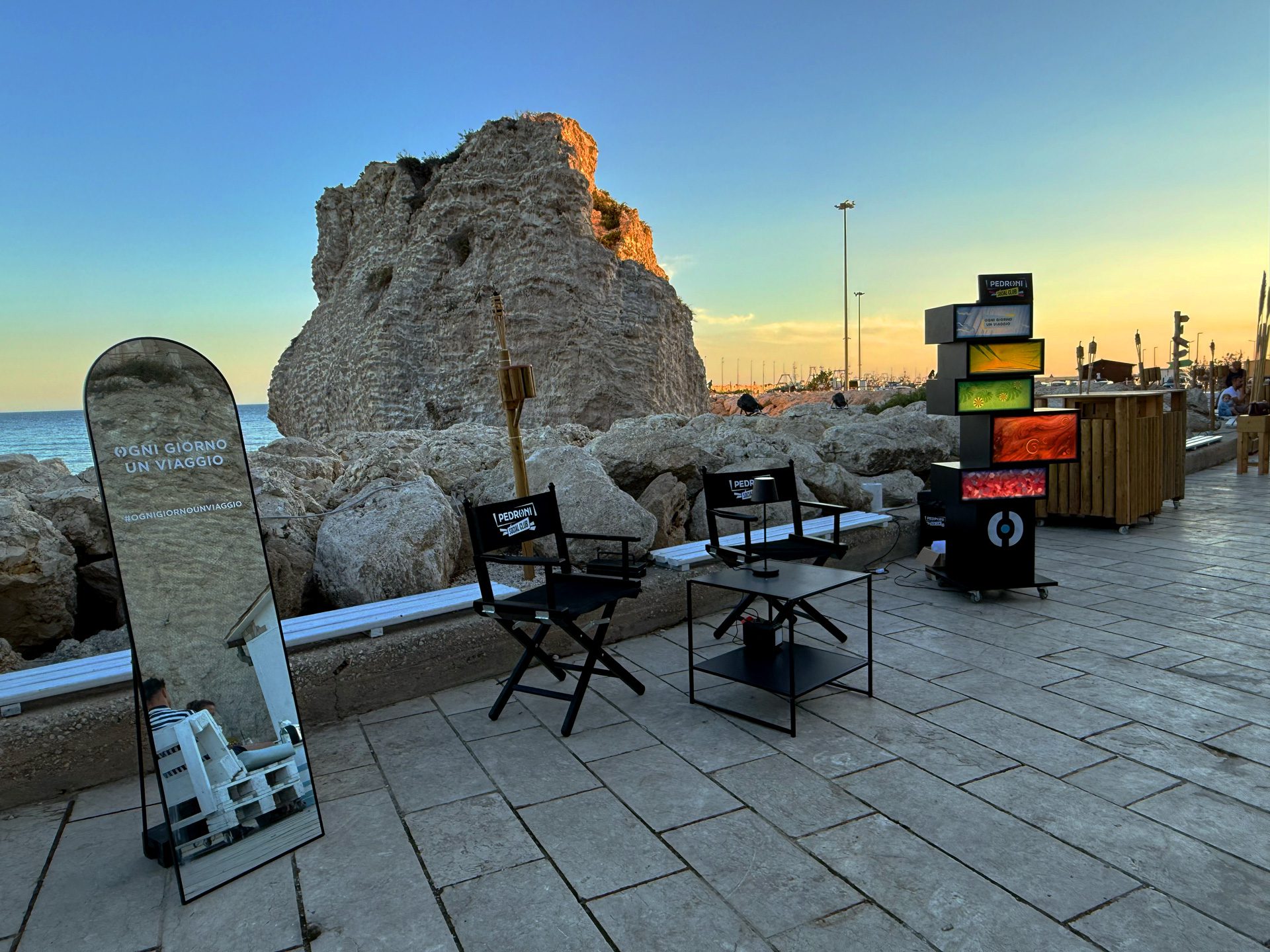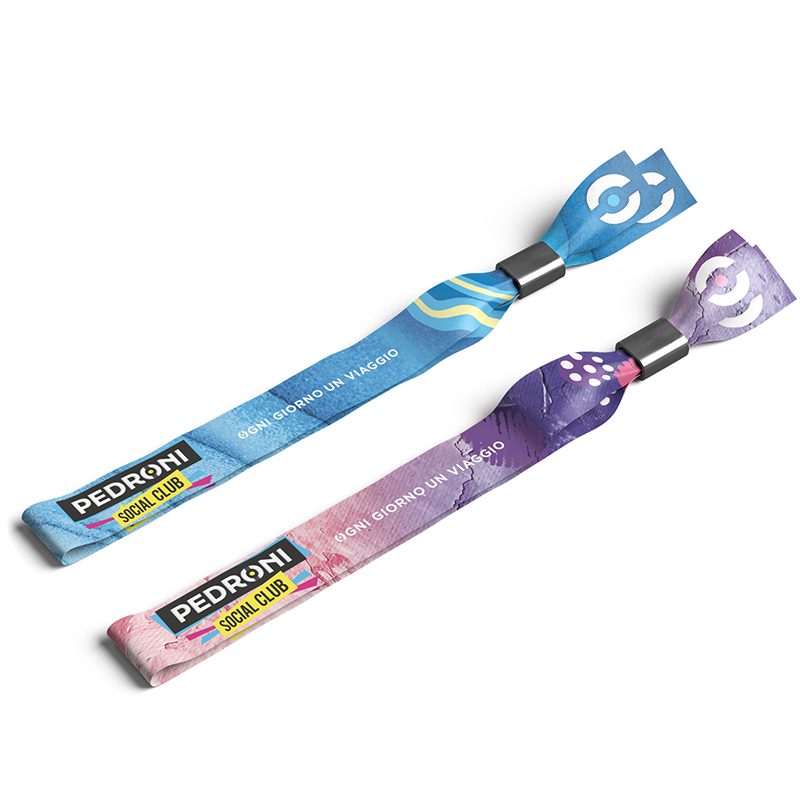 Braccialetti colorati in raso che riporteranno il payoff “Ogni giorno un viaggio”. Questi braccialetti non solo saranno un ricordo tangibile dell’esperienza Pedroni, ma serviranno anche come strumento di branding continuo, visibile ogni giorno al polso dei consumatori e non.